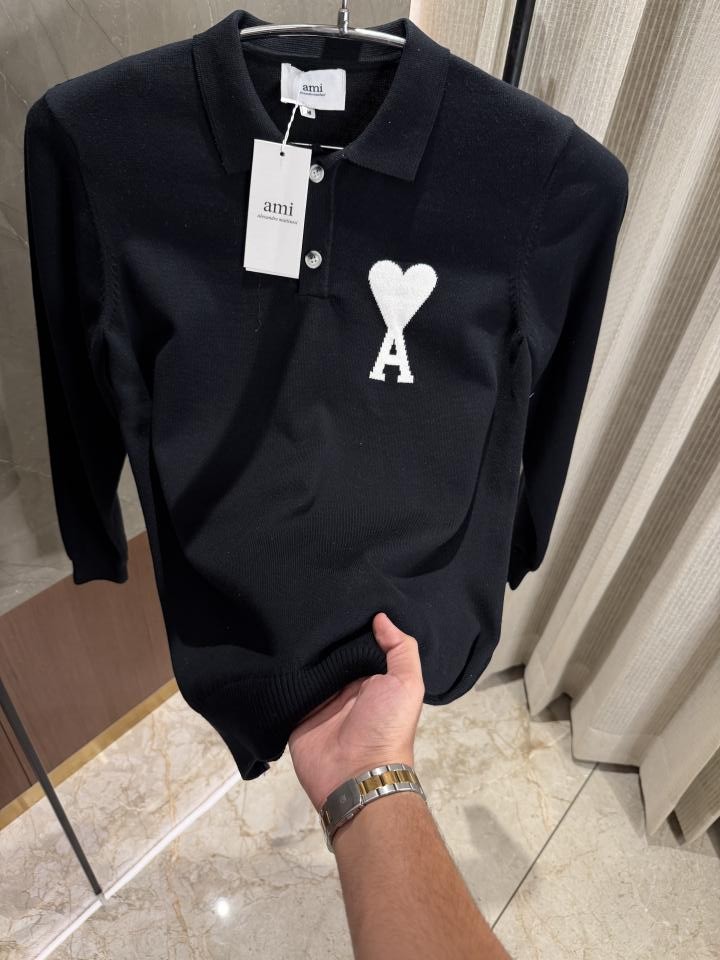 Ami Paris Black Knitted Polo Full sleeves IMPORTED