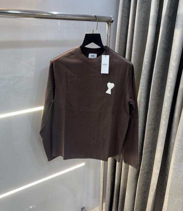 Home T-Shirts Ami Paris Brown Patch Logo Premium Full Sleeve T-Shirt