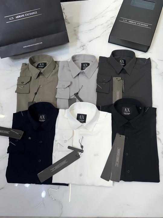 Home Shirts Arman i Exchange Black Premium 4way Stretchable Japanes Lycra Fabric Wrinkle Free Shirt with Brand Box 3238