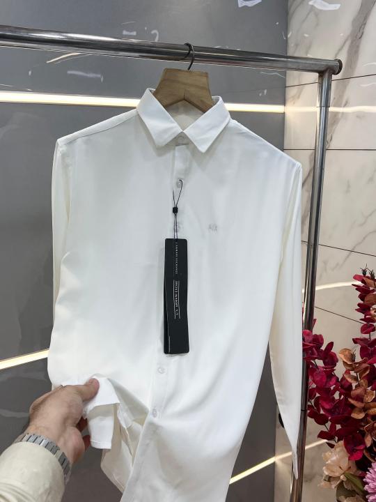 Home Shirts Arman i Exchange White Premium 4way Stretchable Japanes Lycra Fabric Wrinkle Free Shirt with Brand Box 3236