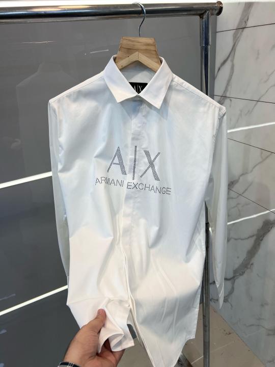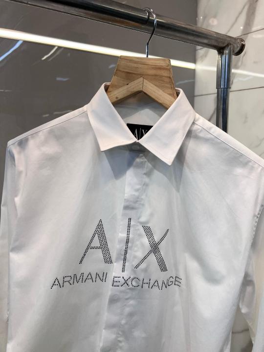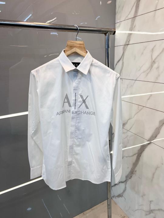 Home Shirts Arman i Exchange White Premium Lycra Imported Fabric Shirt With custom Branded Button Tagging and Pocket Embroidered Logo with Brand Packing 2156