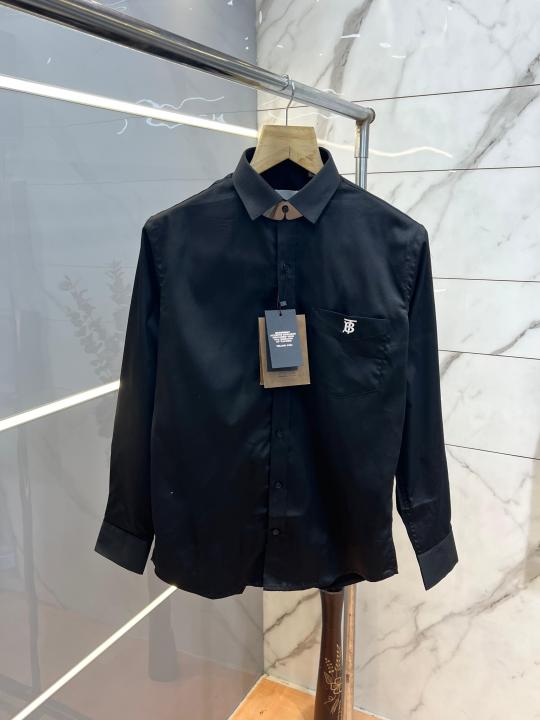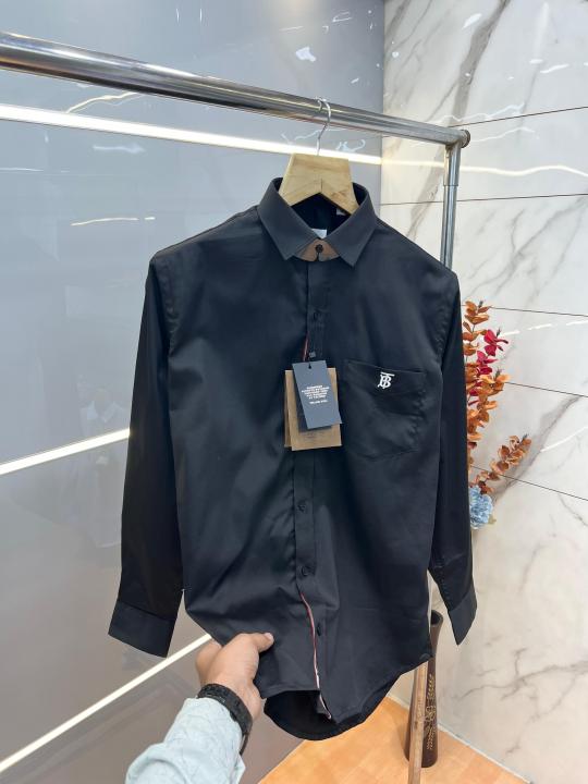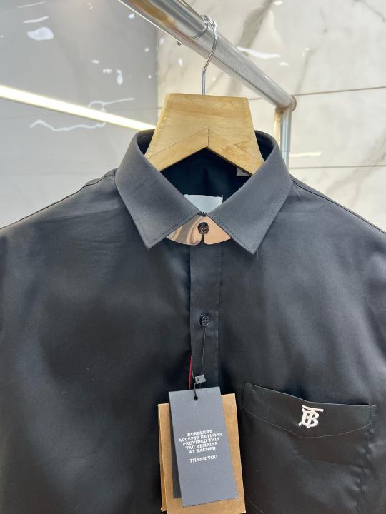 Burberr y Black Premium Embroidered Logo Shirt With custom Branded Button Tagging And Brand Packing 3749