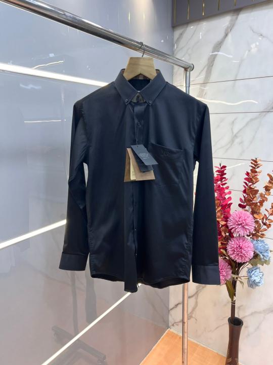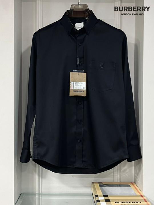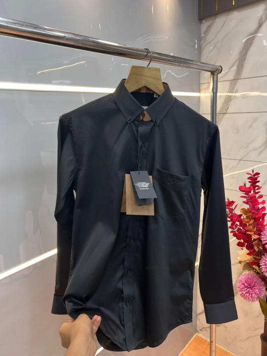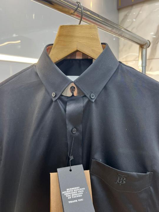 Burberr y Black Premium Imported Embroidered Logo Shirt with custom Branded Button Tagging And Brand Packing 3248