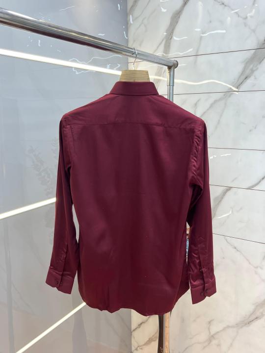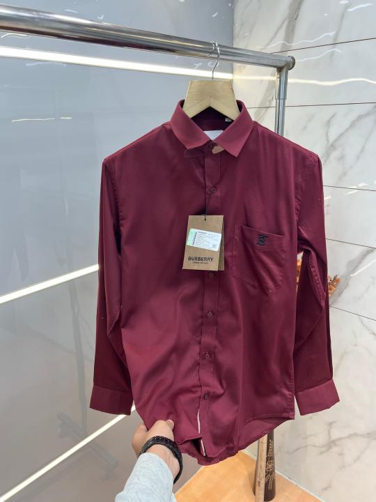 Burberr y Maroon Premium Embroidered Logo Shirt With custom Branded Button Tagging And Brand Packing 3750
