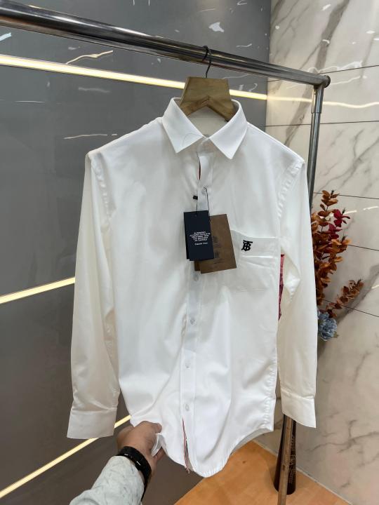Burberr y White Premium Embroidered Logo Shirt With custom Branded Button Tagging And Brand Packing 3751