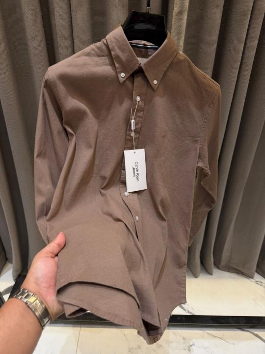 Calvin Klei_n Chest Logo Full Sleeves Shirt Light Brown