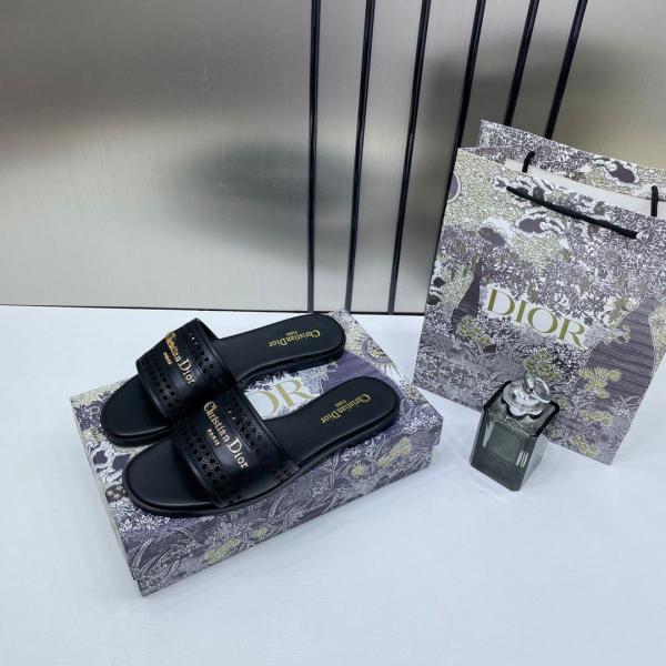 Christian_Dior_D-Lane_Slide_Black_Flats_Openwork_Microcannage_Motif_With_OG_Box_&_Carry_Bag_1892_Black