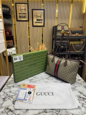 Gucc_i GG Supreme Tote Bag With Box And Dust Bag (Brown)