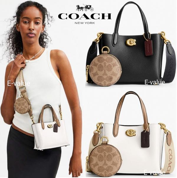 Coach_signature white collection willow small tote 24 crossbody top handle bag with double box premium quality(coin pouch)