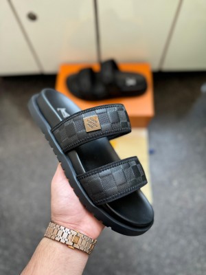 HERMES LOGO BLUE PREMIUM LEATHER SLIDE