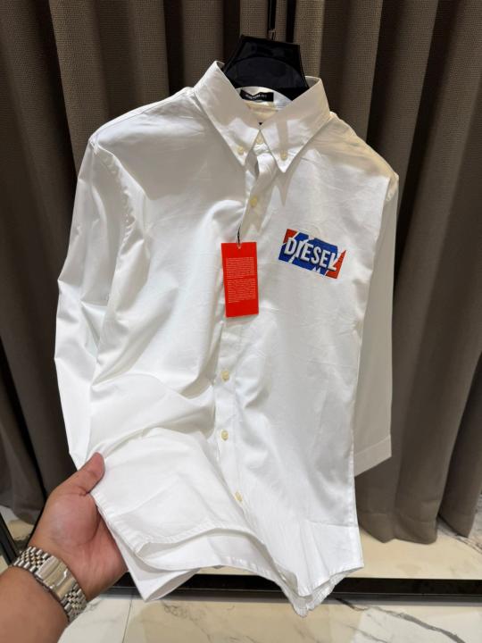 Diese_l Chest Logo Full Sleeves Shirt White