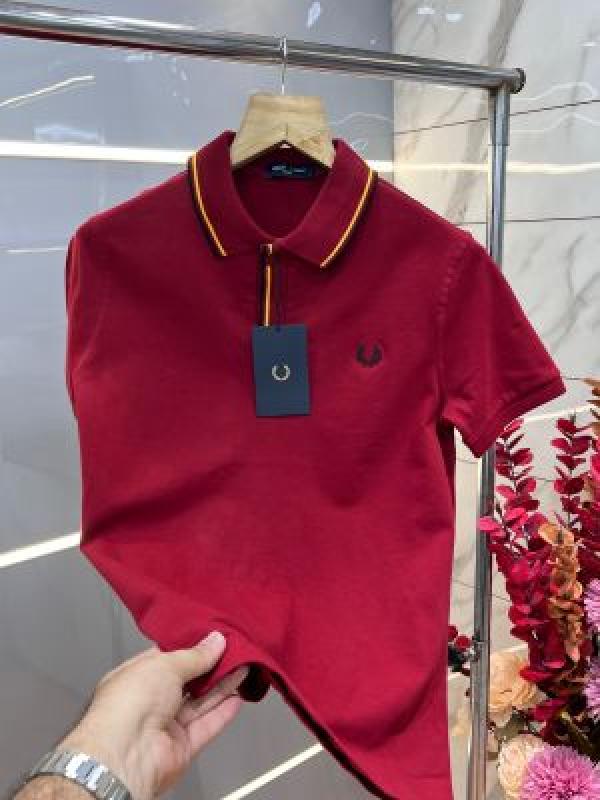 Home T-Shirts Fred Perr y Maroon Premium Cotton Lycra Pique fabric Polo Tshirt with Collar Design and Embroidered Logo 3383