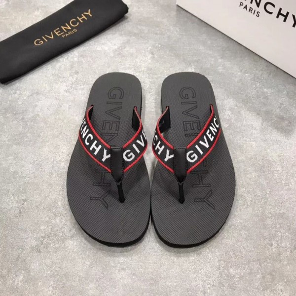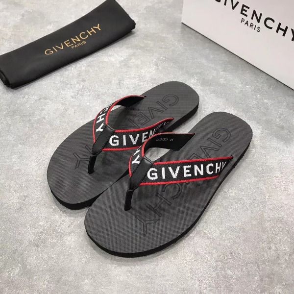 Givenchy mens flip flops black with red border and prominent lettering.