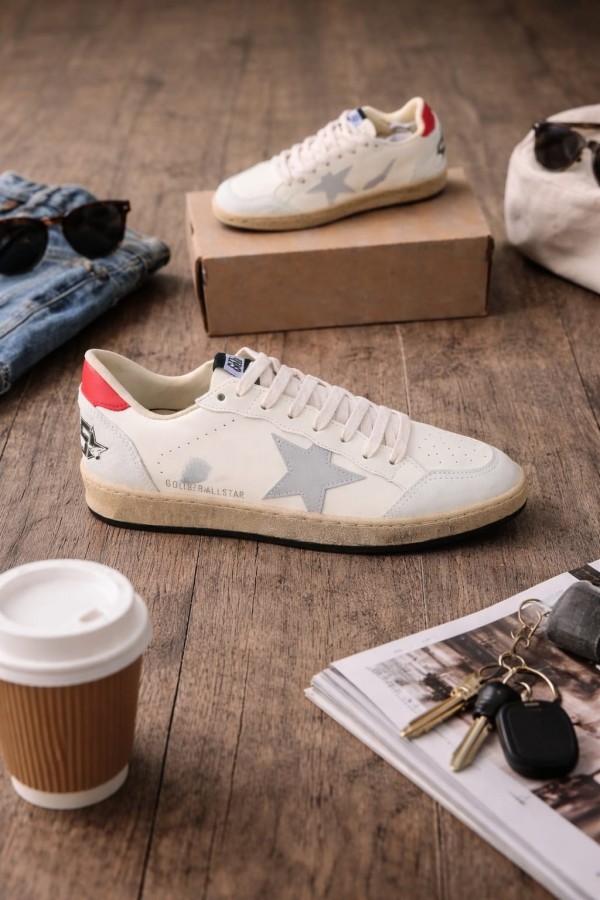 Golden Goose Ball Star White Silver Red Vintage Sole Sneaker