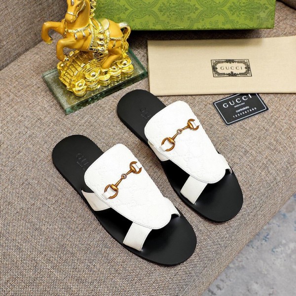 Gu_cci embossed gg logo imported premium leather slide