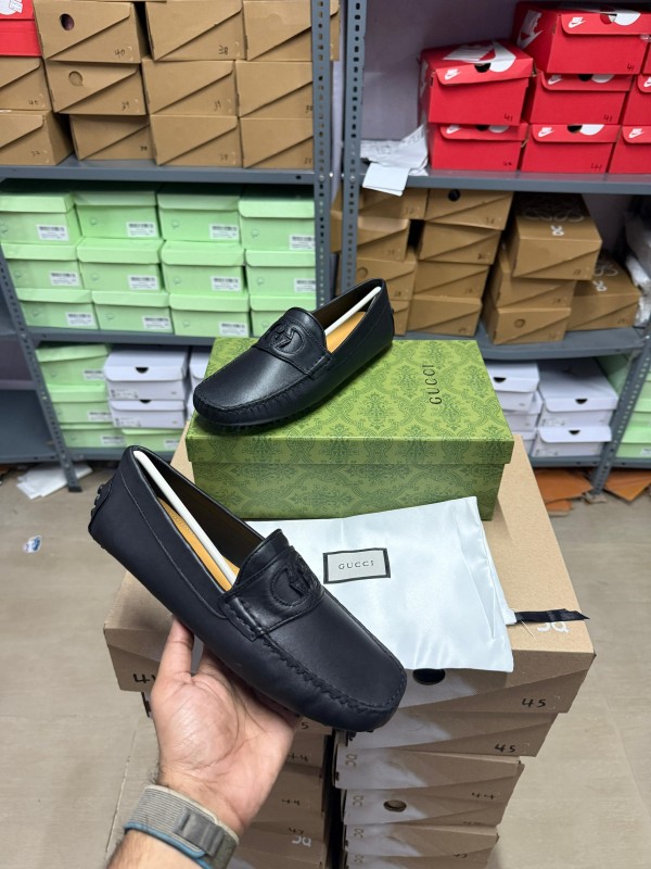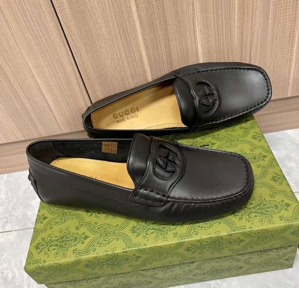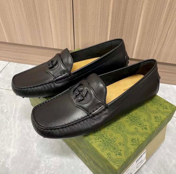 Gu_cci interlocking mens all black leather loafers