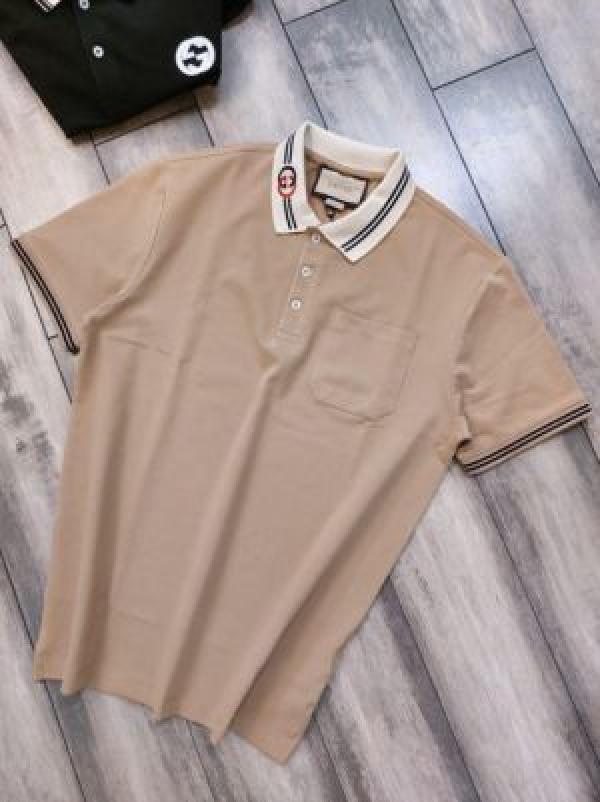 Gucc i Beige Premium Polo T shirt With 240 gsm interlock cotton lycra fabric with Collar Design and Pocket style 2625