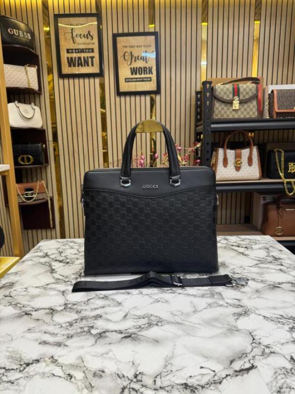 Gucc_i Signature GG Embossed Leather Laptop Bag (G6622-5)