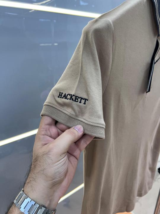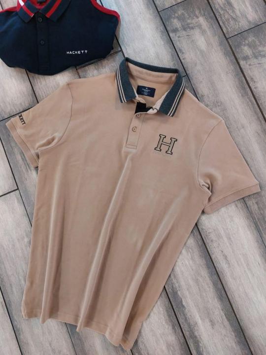 Home T-Shirts Hacke t Beige Premium 240 gsm interlock compact cotton fabric Polo Tshirt with Collar Design and Embroidered Logo 3215