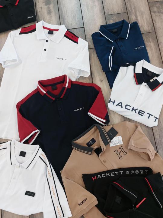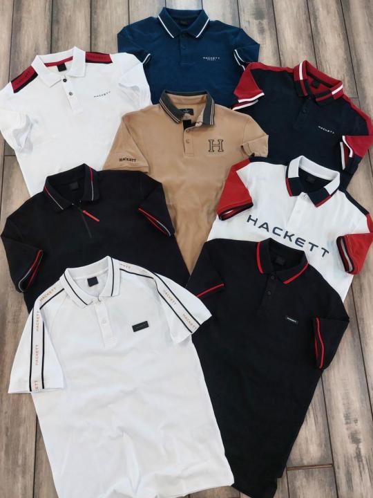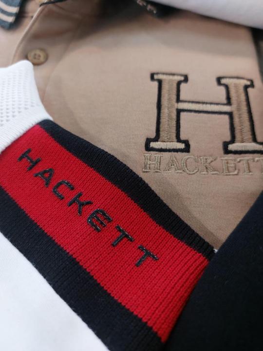 Hacke t White Premium 240 gsm interlock compact cotton fabric Polo Tshirt with Shoulder Strip and Patch Logo 2991