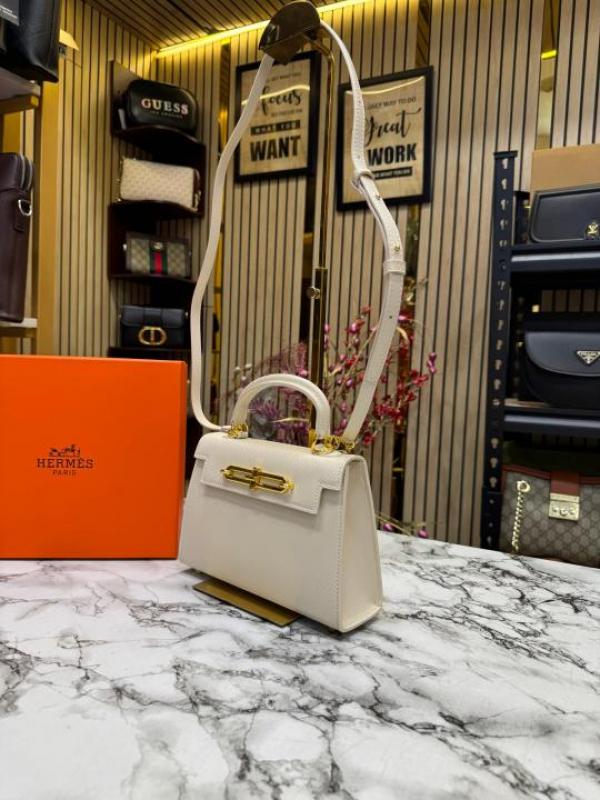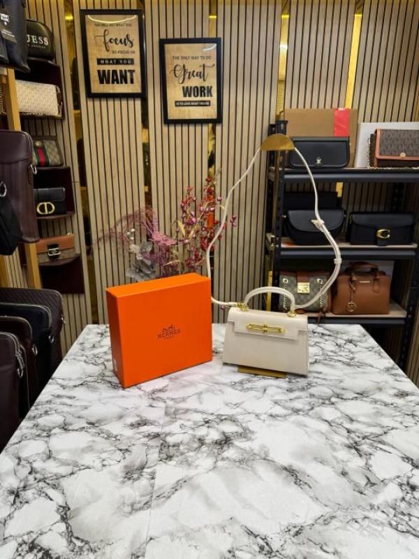 Hermes Kelly Top Handle Bag With Damage Box (White)