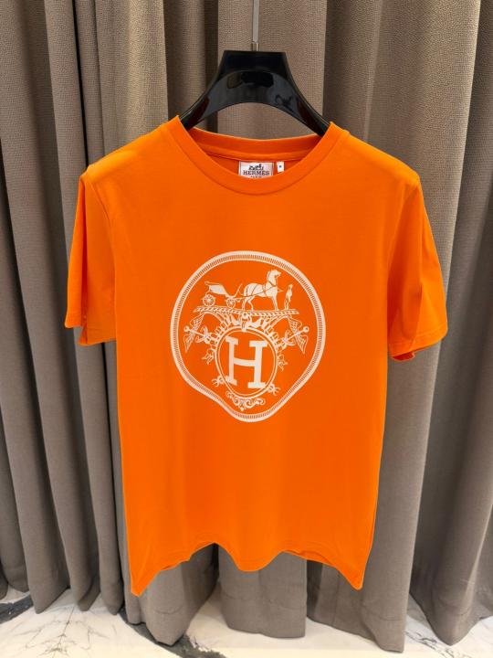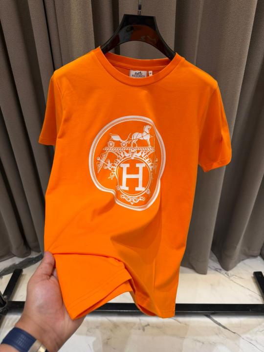 Hermes Middle Brand Print Round Neck T-shirt Orange