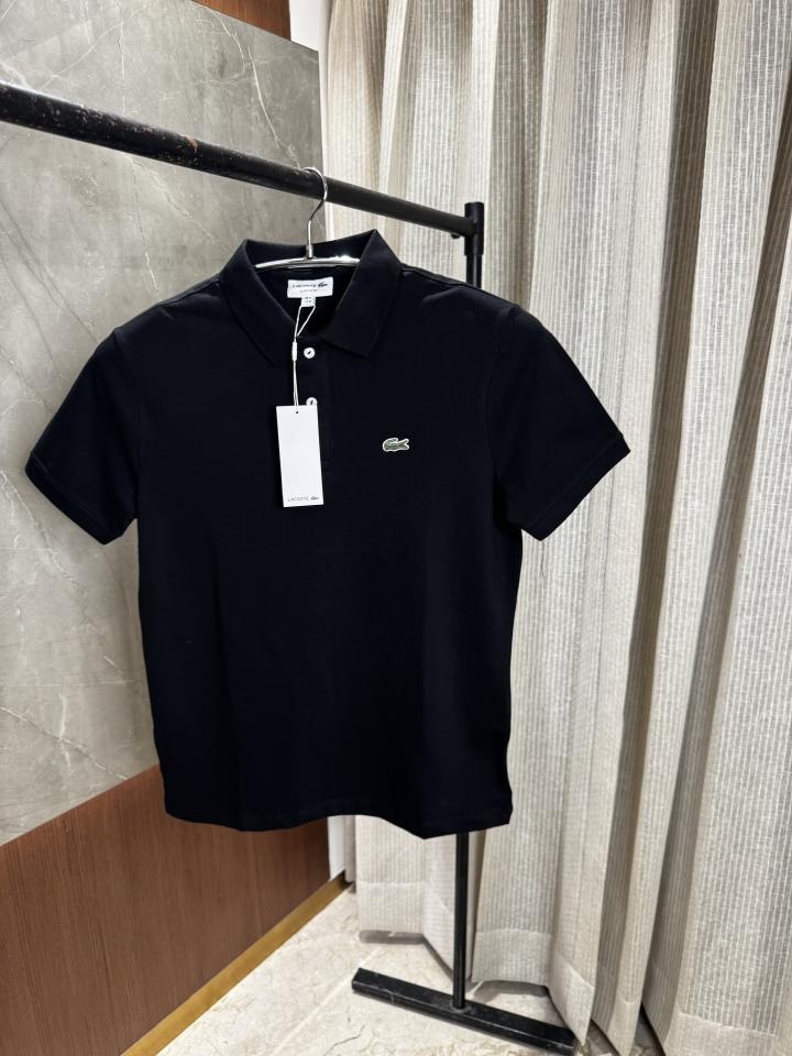 Lacost_e Black Polo Tshirt with Brand collar