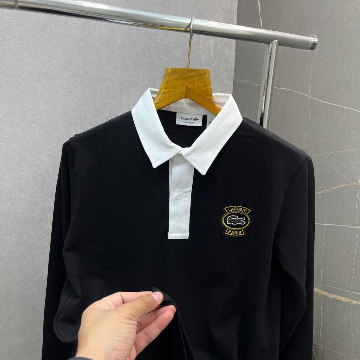 Lacost_e Black Premium Polo Full Sleeves Tshirt 498