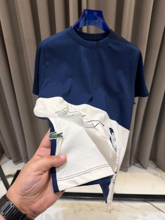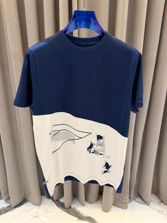 Lacost_e Middle Brand Embossed Logo Round Neck T-shirt Green