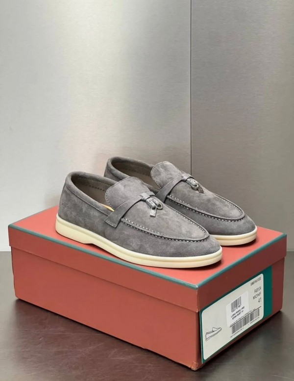 Loro Piano Summer Walk Grey Suede Loafers