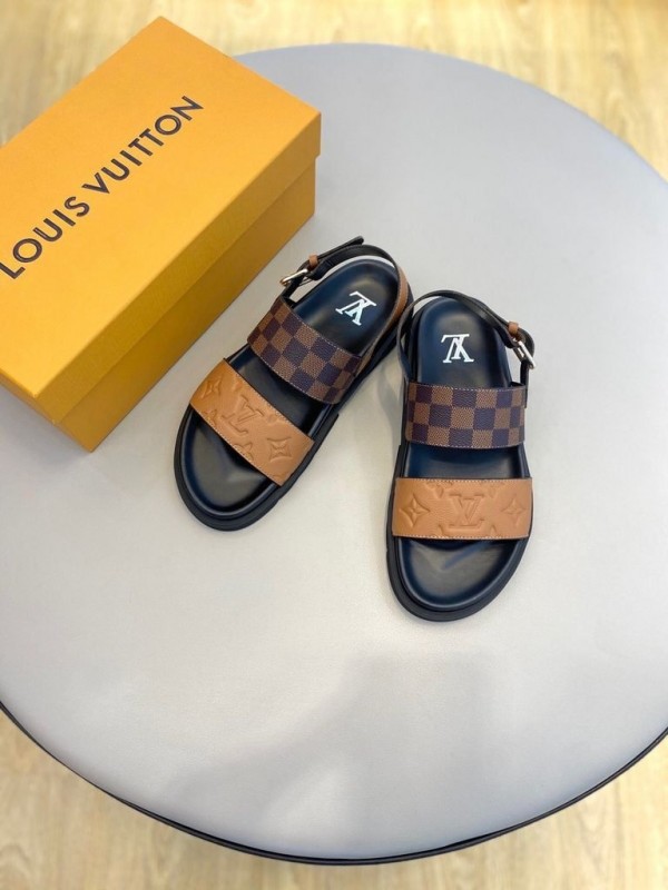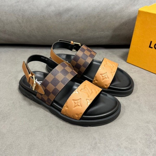 Louis Vui_ton monogram embossed cowhide strap and unique plaid patern sandal.