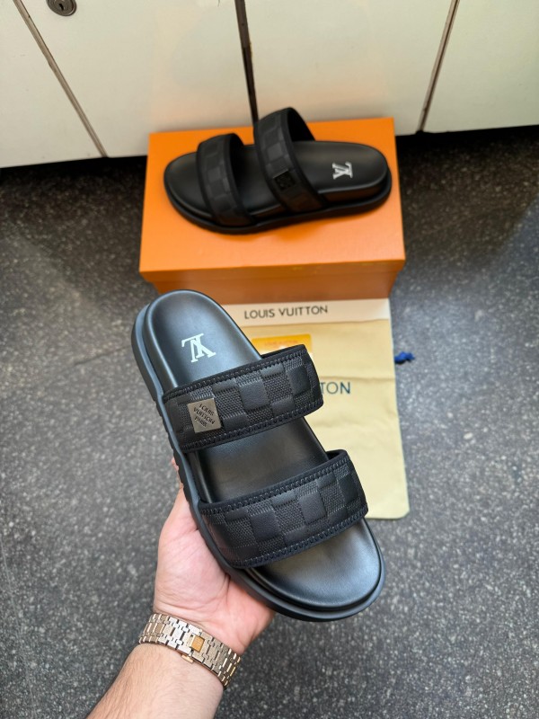 HERMES LOGO BLUE PREMIUM LEATHER SLIDE