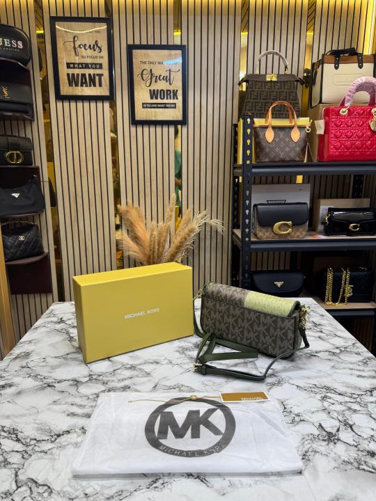 Michael_Kors Colorblock Monogram Shoulder Bag With Box And Dust Bag (Green) (V-100815)