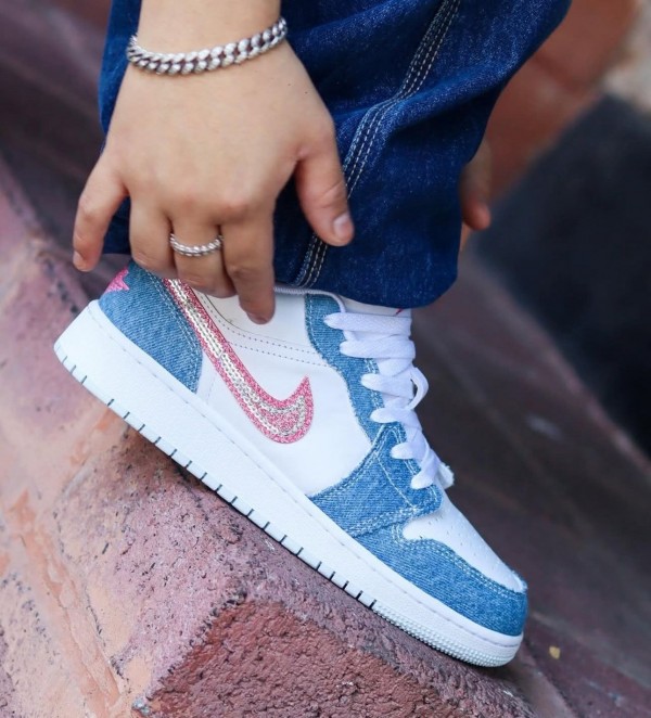 Ni_ke air jordan 1 low gs denim sequin