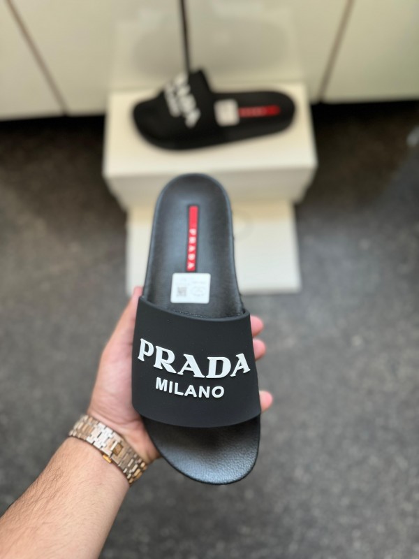 Pra_da logo leather slides black premium