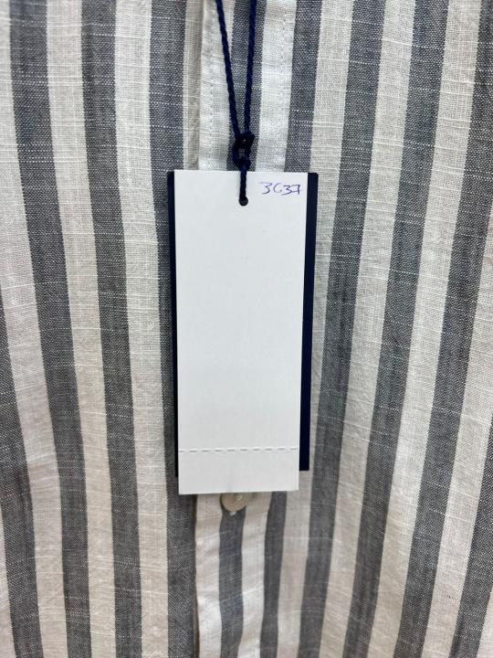 Ralph Laure n GREY Premium Imported Cotton Linen Fabric Shirt with Strips and Embroidered Logo 3637