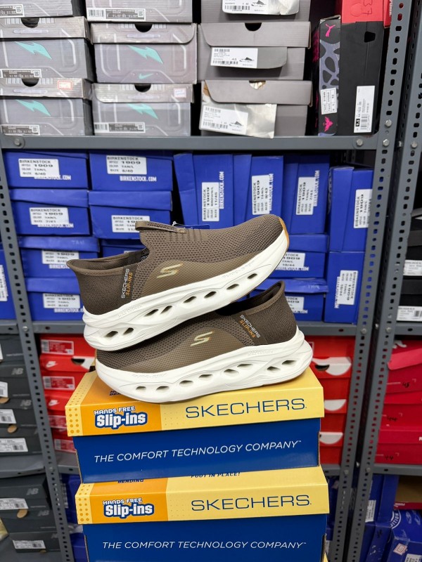 Ske_chers go run mens slipons brownwhite