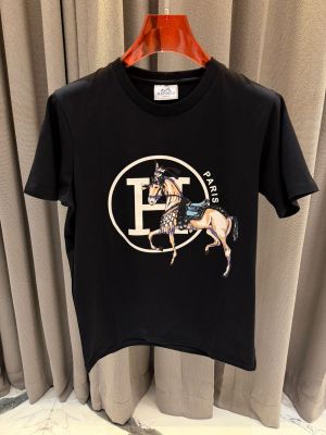Hermes Middle Brand Print Round Neck T-shirt Black