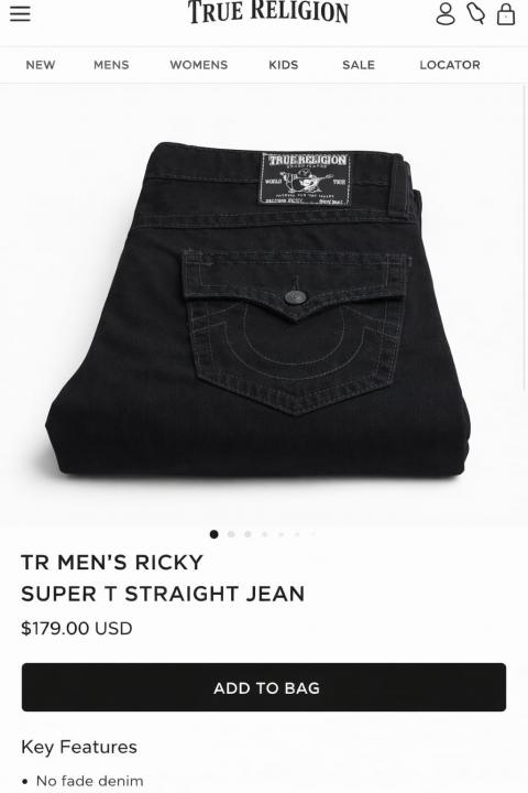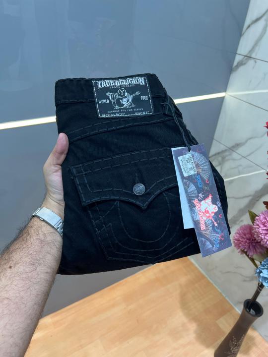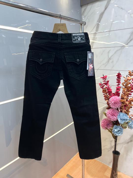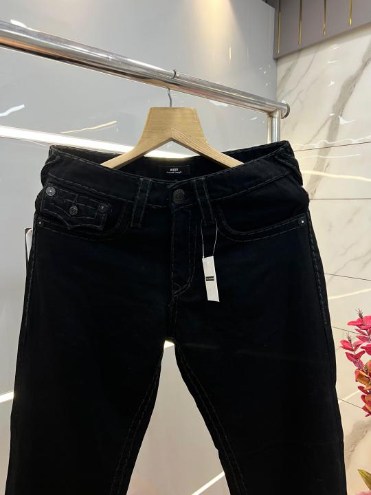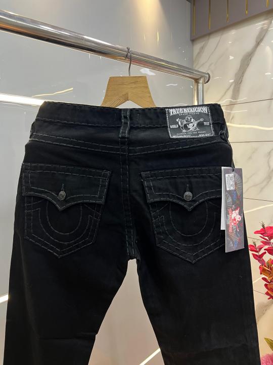 Home Jeans True Religion Black Straight Fit Premium Imported Fabric Denim with Back Flap pockets and Embroidered work 3774
