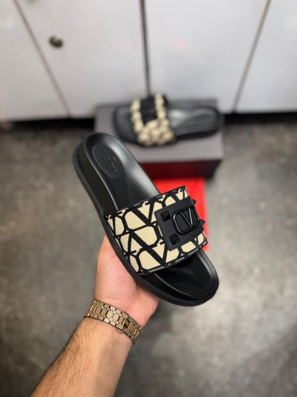 HERMES LOGO BLUE PREMIUM LEATHER SLIDE