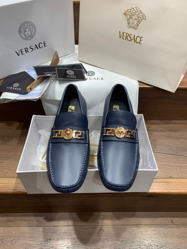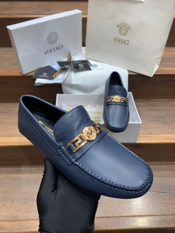 VERSACE LOGO BLUE PREMIUM LEATHER LOAFER